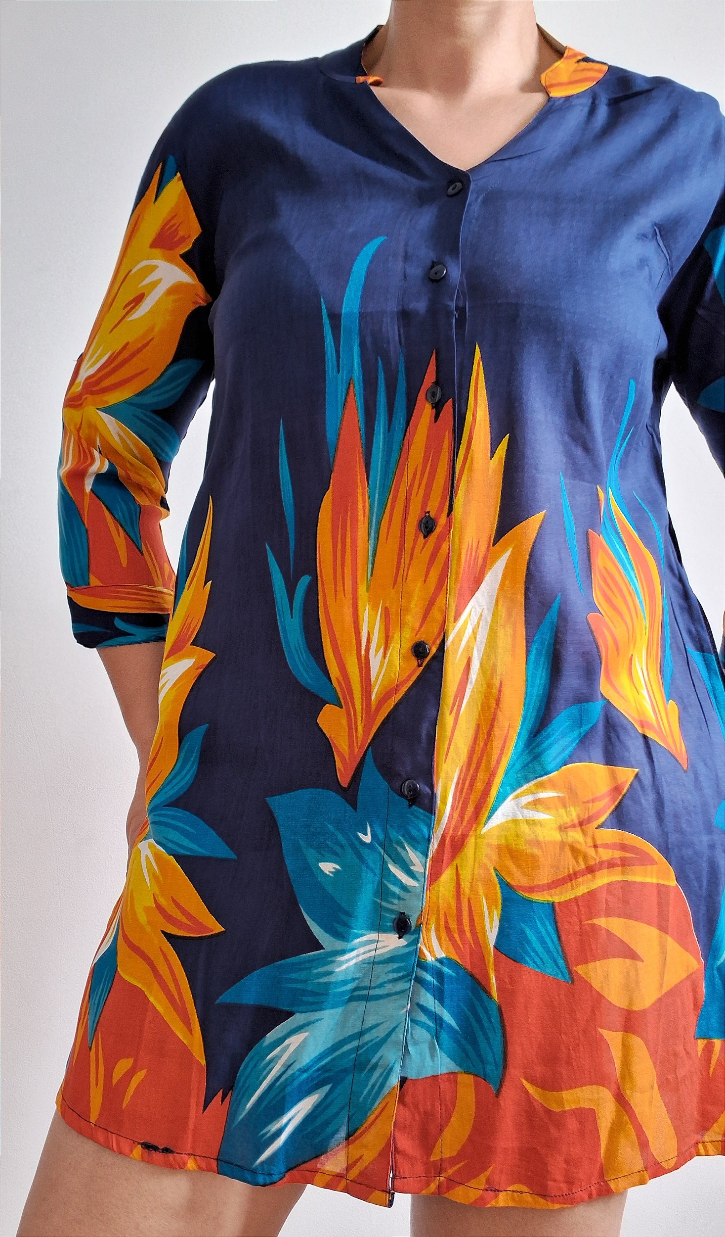 Chemise saída de praia camisa longa azul, viscose, caimento perfeito. Tamanho único.
